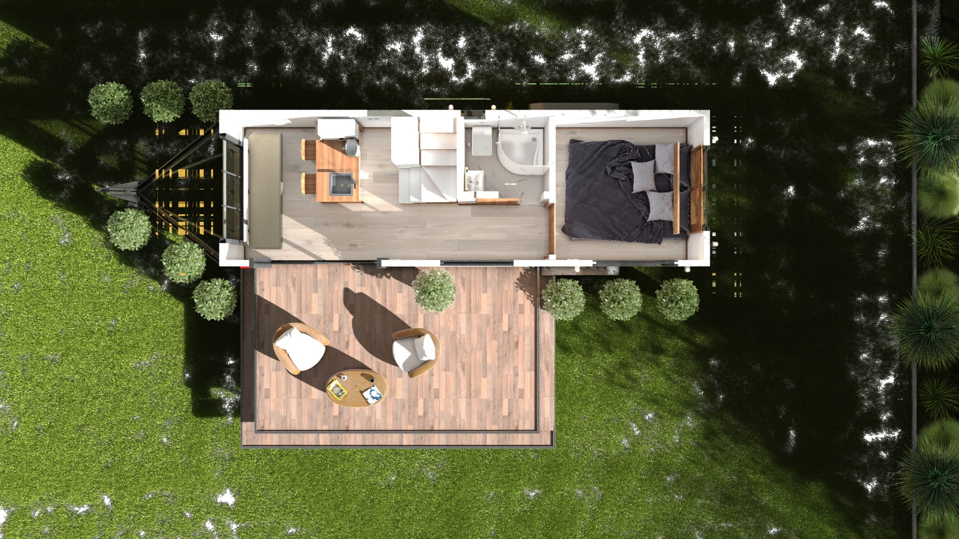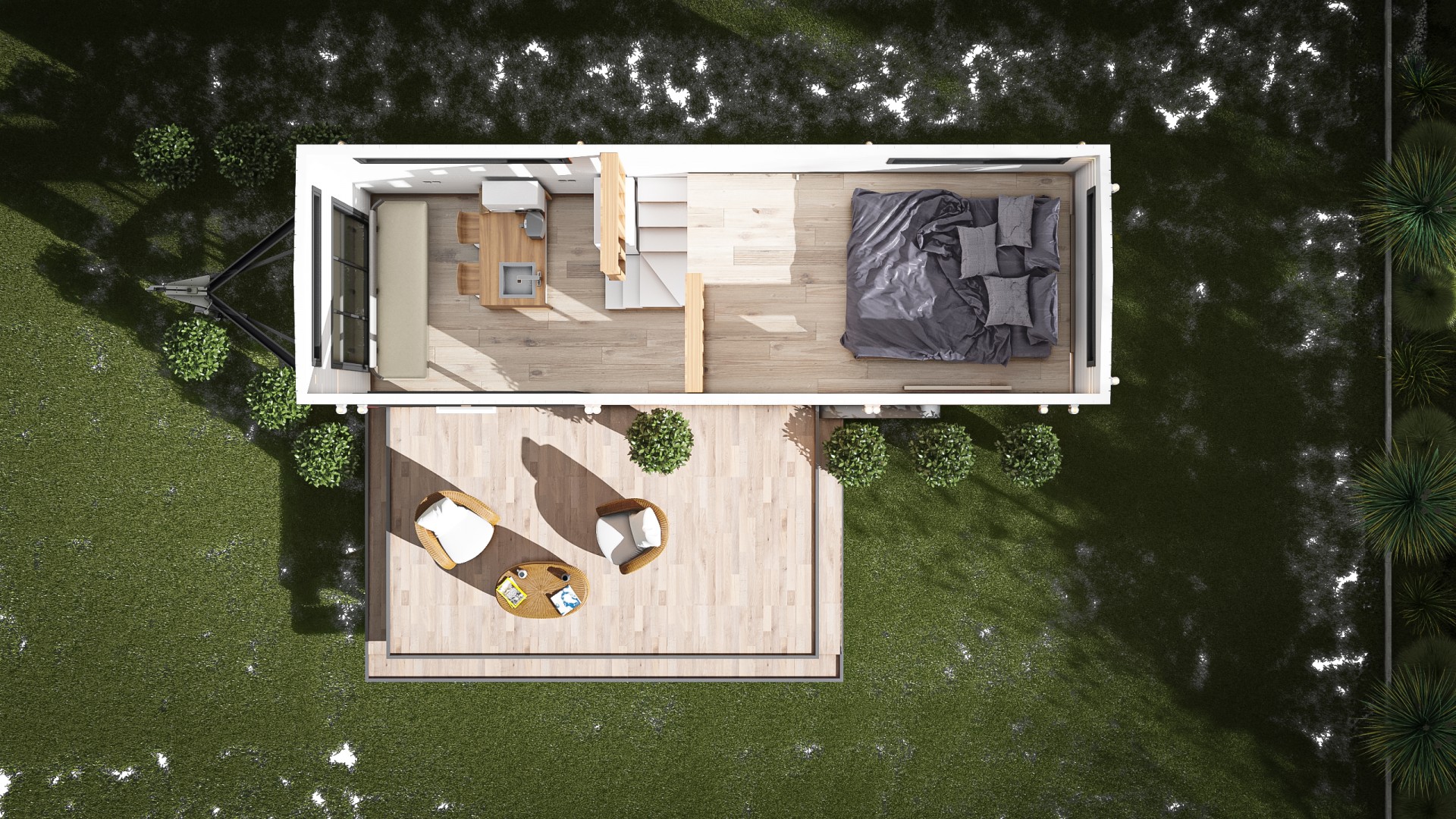 Modelimiz, 8 metre uzunluğunda, 2,5 metre genişliğinde ve 4 metre yükseklikte olup, 24,44 metrekare bir yaşam alanı sunar.