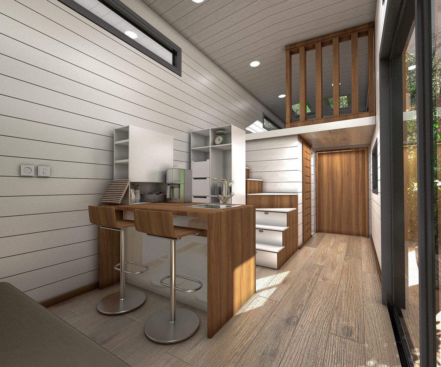Ayrıca her bir alanı verimli kullanılmış, bol camlı bir salon, kullanışlı banyosu ve adalı mutfak alanı, loft katında çift kişilik 1 adet yatak odası ile toplam 2 oda bulunmaktadır.
